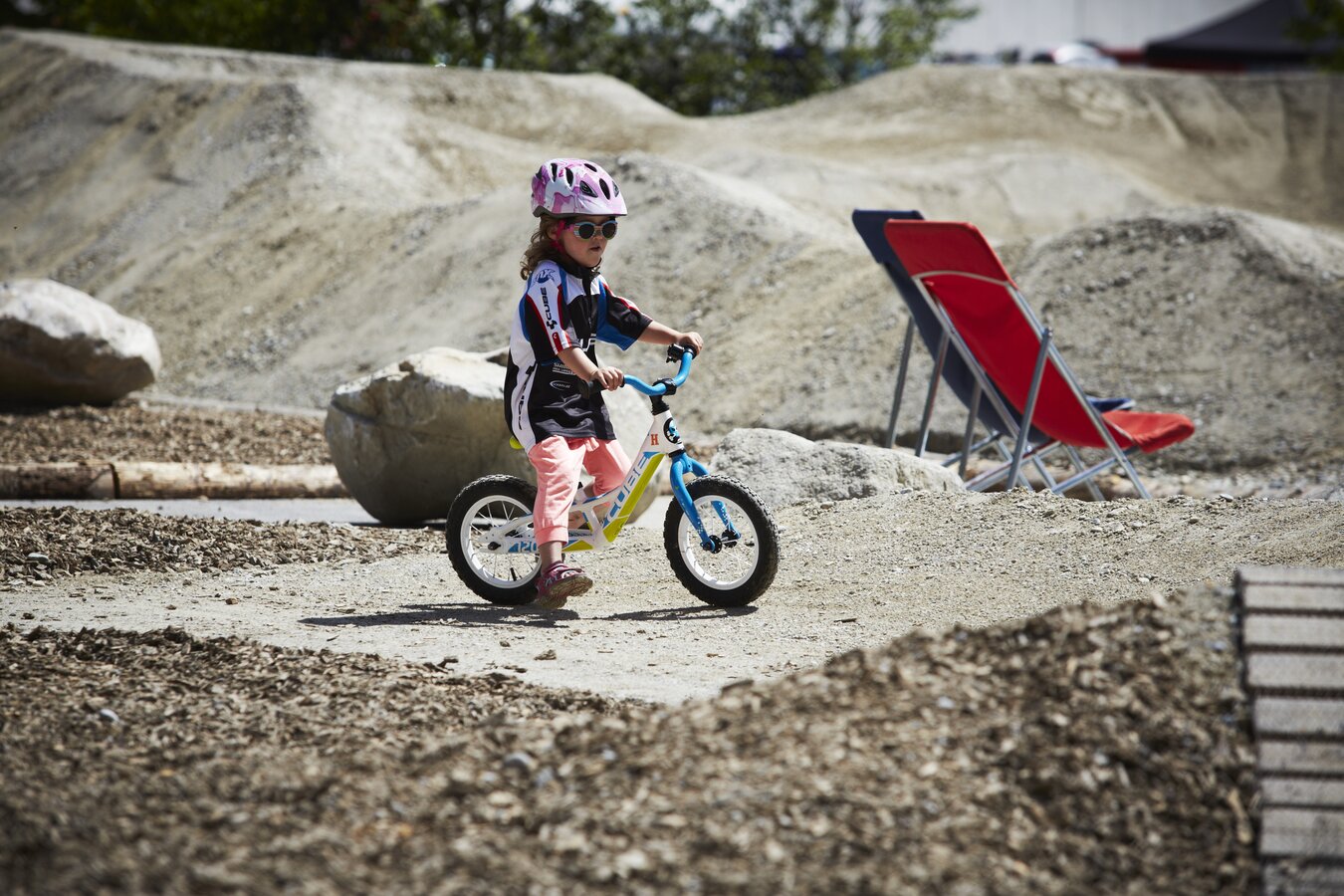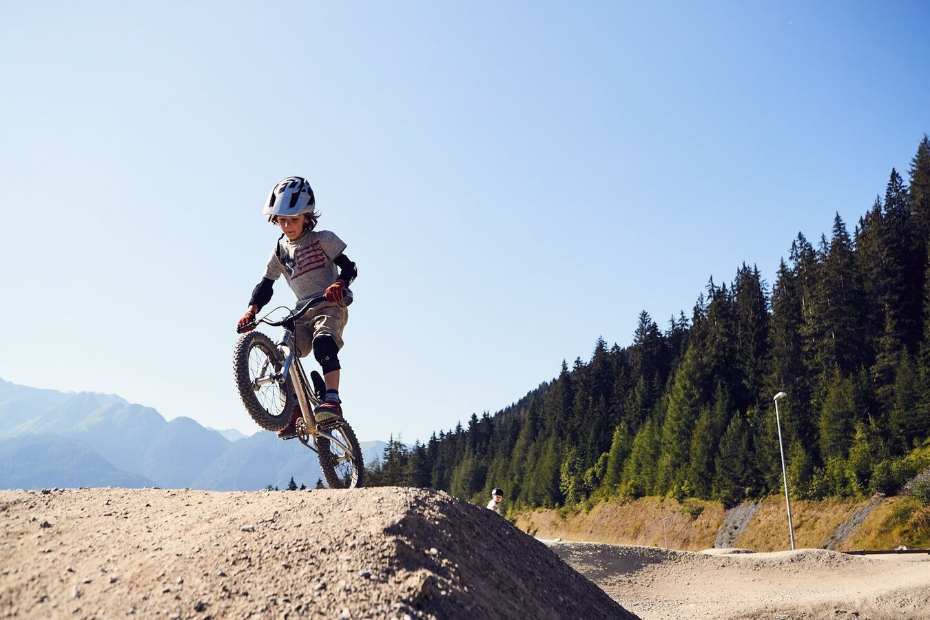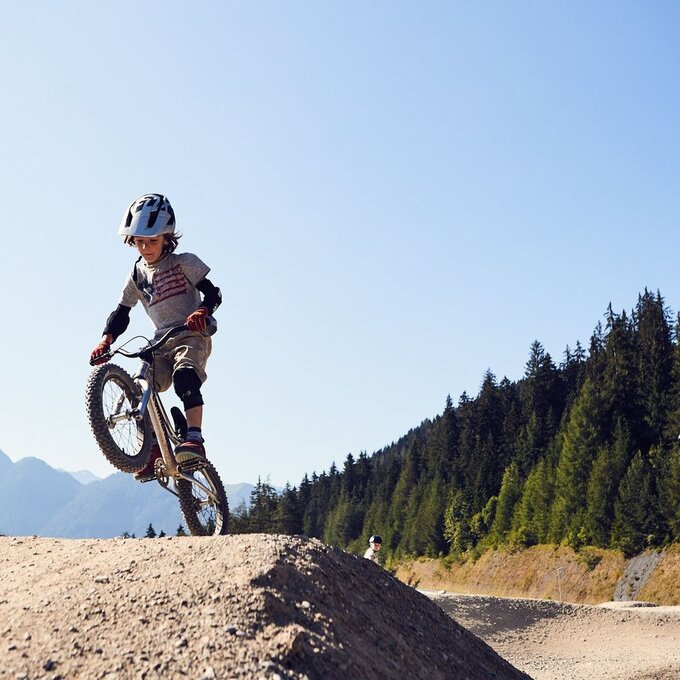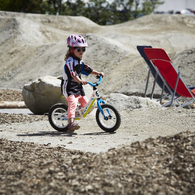 Für alle Dreijährigen haben wir sogenannte Pushbikes, also Laufräder, die kostenlos gegen eine Kaution ausgeliehen werden können. Hindernisse und Anleger in Miniformat versprechen in der Kids Area Spaß für die kleinsten Rider. Ansonsten starten wir im Bikepark und in der Bikeschule mit Vierjährigen. Je früher sie sich mit dem Bikesport vertraut machen, desto besser. Früh übt sich bekanntlich. Drängen sollte man die Rookies allerdings natürlich nicht. Das Wichtigste: It should be fun!