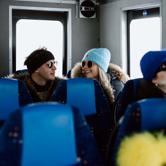 Jetzt lädt er in „seinem“ Masner Express Gäste gerne nach vorne in die Fahrerkabine ein und kommt während der Fahrt mit ihnen ins Gespräch. Meist lässt der zweifache Vater Kindern den Vortritt und durfte dabei viele schöne Begegnungen erleben. Überhaupt sind in seinen zahlreichen Berufsjahren viele bemerkenswerte Erlebnisse passiert. „In jeder Saison gibt es mehrere Heiratsanträge am Berg. Dabei musste ich sogar schon als Fotograf einspringen“, lacht er.