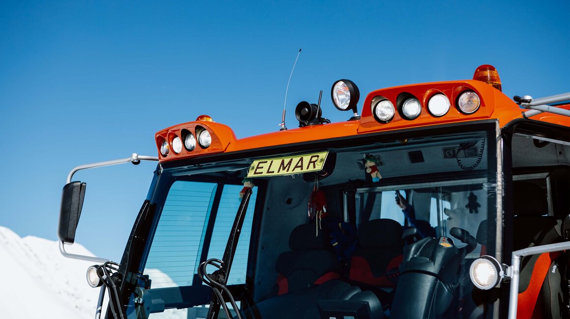 Sein Arbeitsgerät, die zum Masner Express umgebaute Pistenraupe, bringt bis zu 16 Gäste auch ohne Ski vom Tal oder von der Bergstation der Lazidbahn aus in den Masner und zurück. Je nach Abfahrtsort dauert die Fahrt bis zu einer Stunde. Zusätzlich beliefert Elmar bei seinen Fahrten die Restaurants im Skigebiet, holt Müll ab und an diesem Tag nimmt er sogar ein Paket mit auf seine Fahrt. Paketdienst im Skigebiet? „Nein, das war eine Ausnahme“, sagt er. Seine Arbeitstage beginnen früh und enden spät: Wenn die wöchentliche Sonnenaufgangsfahrt Sunrise Hexensee ansteht, starten seine Tage mitunter schon um Viertel vor fünf Uhr. Bringt er die Gäste vom exklusiven Sunset Dinner Masner zurück ins Tal - so wie am Tag des Interviews – dann endet seine Arbeitszeit erst gegen halb zehn Uhr abends.