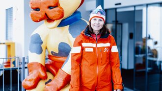Was ihren kleinen Gästen in der Kinderskischule Fiss-Ladis gefällt, das hat Eva im Gespür – und sie hat im Laufe der Jahre viel Erfahrung dazu gesammelt. Ihren Riecher für kindliche Begeisterung hat sie auch bei der Entwicklung des Skischul-Pausenprogrammes mit Maskottchen Berta unter Beweis gestellt. „Berta wurde vom Fisser Fully Rietzler eigentlich als Kinder-Beförderungsmittel für den Sommer entwickelt. Ich habe dann versucht, Berta auch in den Winter und in die Skischule einzubauen. Eine Mitarbeiterin, die auch Schneiderin ist, hat mir ein erstes Kostüm für Berta geschneidert. Die freundliche gelbe Kuh mit den großen Augen und gekleidet in einer roten Hose ist gleich gut angekommen“, erinnert sie sich. Mittlerweile ist Berta aus der Skischule Fiss-Ladis nicht mehr wegzudenken. Und Eva hat sogar ein Kinderbuch über die Abenteuer des Maskottchens selbst verfasst. Woher nimmt sie all ihre Ideen? „Die sprudeln einfach so“, lacht sie. „Die kreative Arbeit mache ich meistens im Frühjahr und Sommer, wenn ich mehr Zeit habe. Dann bin ich unterwegs, in der Natur oder auf Reisen, lese viel und lasse mich inspirieren.“