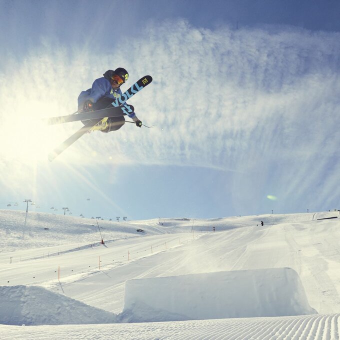 „Mit meiner Firma decke ich inzwischen 3 SCHWERPUNKTE ab“, sagt er. „Zuallererst bauen und betreuen wir Snowparks. Später entwickeln wir sie dann weiter. Auch in den Fun Areas am Plateau ist einiges los. Außerdem arbeite ich auch unmittelbar bei den Abendshows in Fiss und Serfaus mit. Ich freue mich schon riesig, wenn wir nächstes Jahr wieder zeigen können, was wir draufhaben“. Goffis Team hilft , die Setups in Szene zu rücken, organisiert bei den Showacts etwa die Freestyleparts und auch jene mit Speedglidern, Mountainbikern, etc.