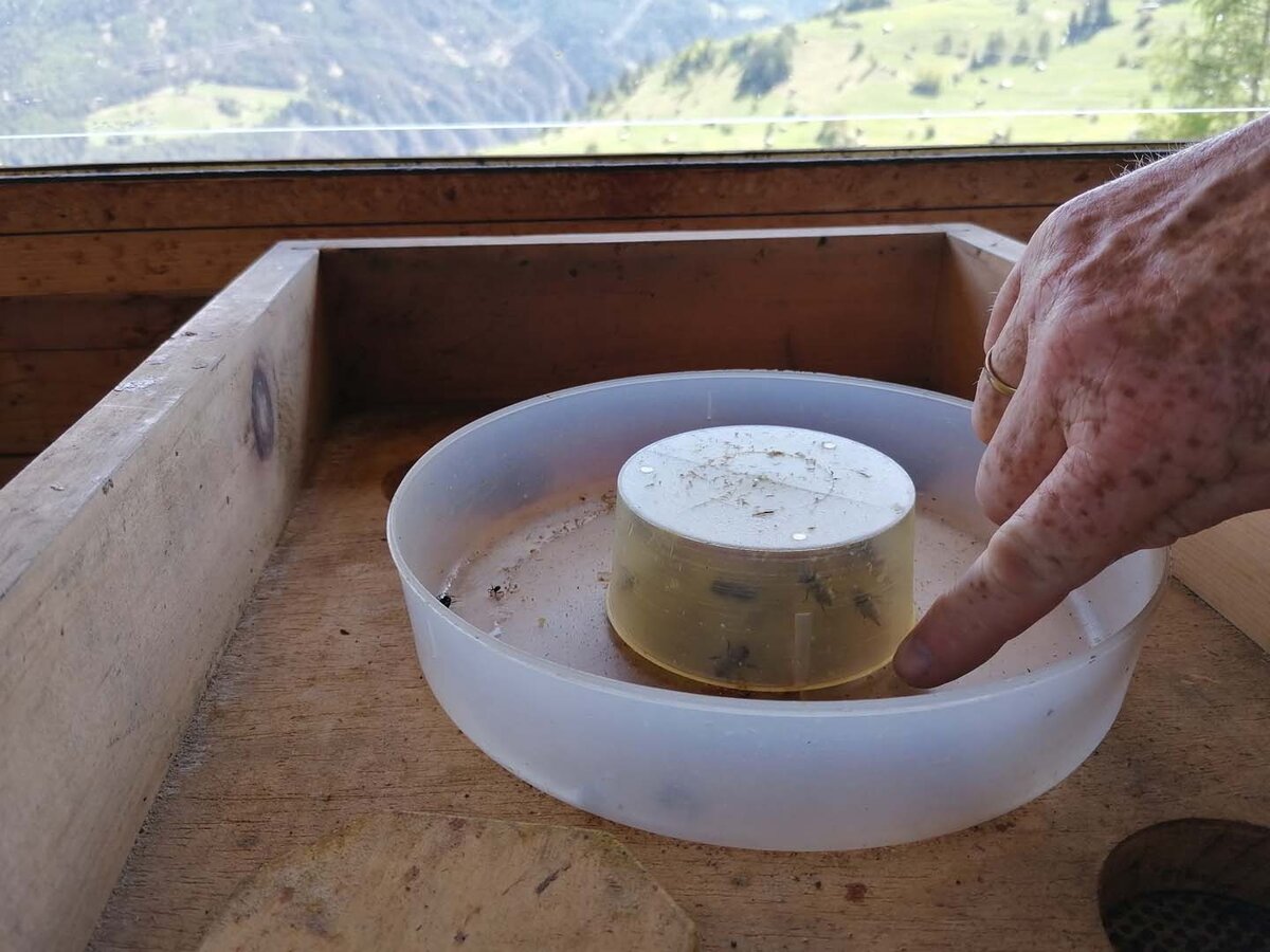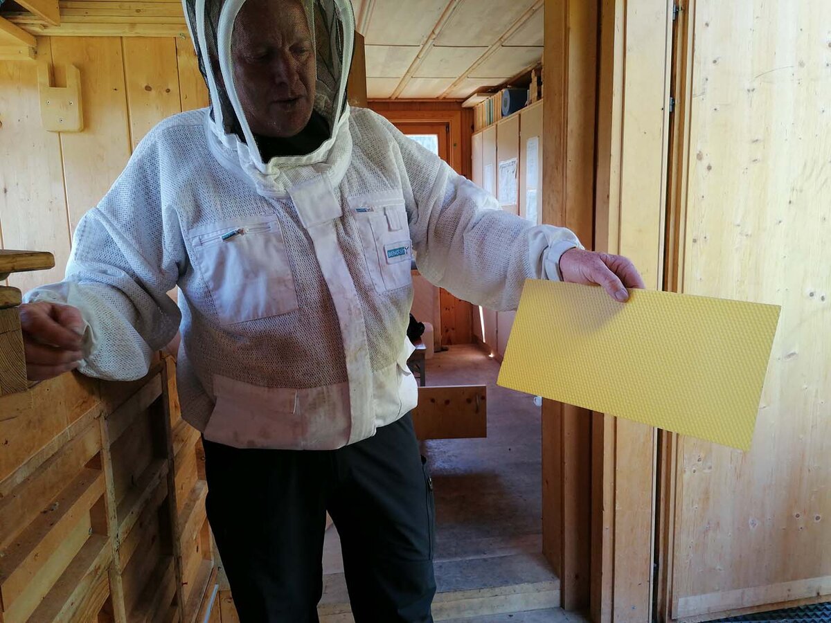 Damit der Imker an den Honig kommt, muss er vor dem Schleudern den Deckel auf den Waben entfernen. Das entfernte Wachs wird anschließend gesammelt und eingeschmolzen. Aus dem eingeschmolzenen Wachs wird dann ein vorgefertigtes Wabenmuster erstellt. Das dient den Bienen als Basisgerüst für ihre Waben. So können die Bienen mehr Energie für das Honigproduzieren aufwenden. Stibitzt der Imker ihren Honig, füttert er die Bienen mit Zuckerwasser, damit sie gut durch den Winter kommen. „Alles soll man den Bienen aber nie nehmen“, so die Einstellung von Alfred.