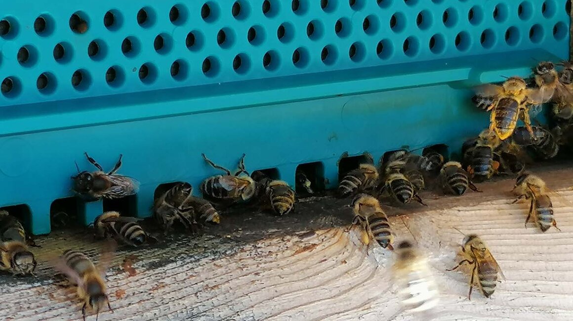 Alfred erklärt mir, dass es verschiedene Bienen gibt, die alle eine bestimmte Aufgabe haben: „So ist es bei dir auf der Arbeit doch auch? Du machst das, was du gut kannst. Bei einem Volk ist Teamwork angesagt. Pro Volk gibt es eine eierlegende Königin, die farblich markiert ist. Nach 21 Tagen schlüpfen die weiblichen Arbeitsbienen, die männlichen Drohnen, die doppelt so schwer wie die Mädels sind, sind für die Begattung ihrer Königin zuständig und brauchen ein paar Tage länger bis sie schlüpfen. Eine Königin entwickelt sich nach 16 Tagen. Das sind Dinge, die man beim Bienenhalten einfach wissen muss. Es ist schon eine Wissenschaft“, erzählt mir Alfred. Bei meinem Besuch erkenne ich ganz klar, dass die Bienen der drei Bienenberufe optisch anders aussehen. Die Königin, die bis zu fünf Jahre alt wird, schlemmt ihr ganzes Leben Gelée royale und ist dünner und länglicher. Findest du sie auf den Foto?