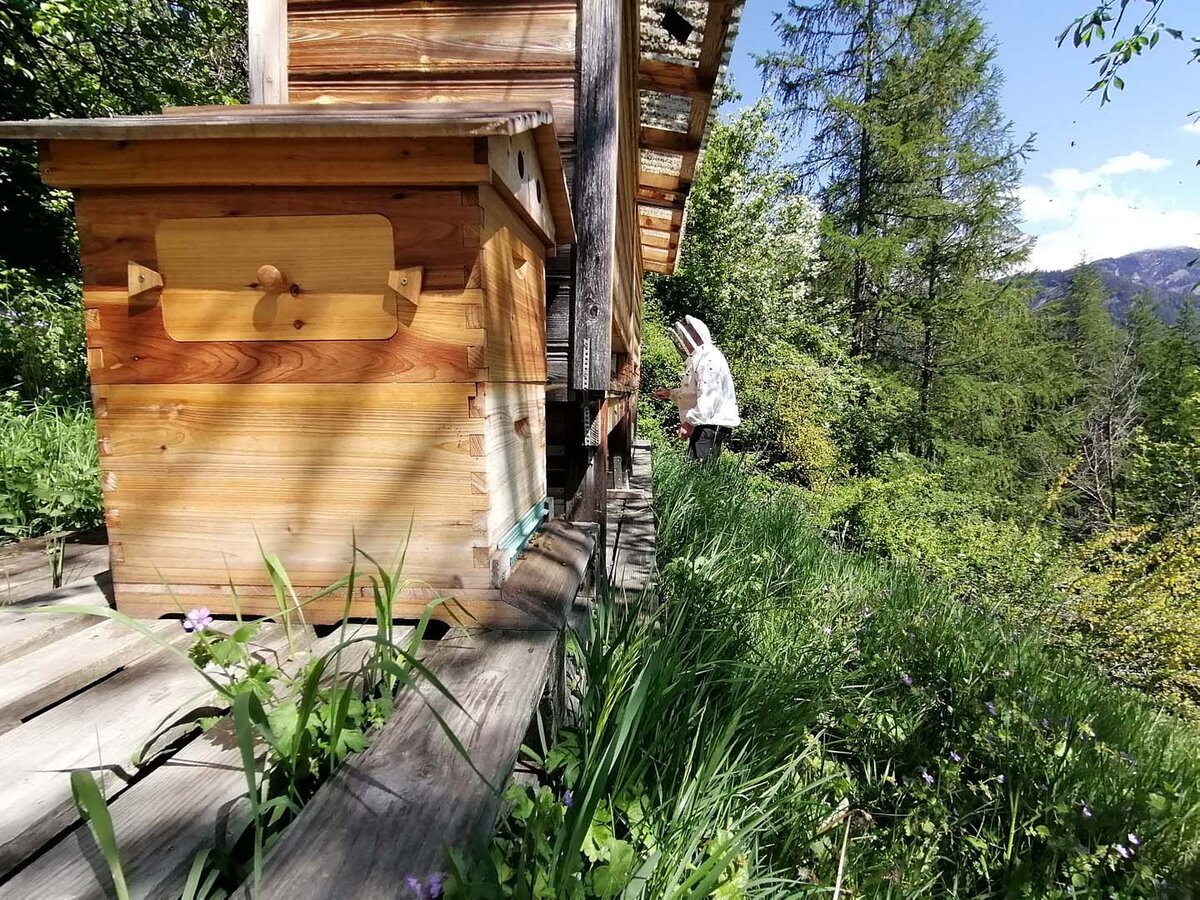 Bienenzucht ist ein komplexes Hobby. Alfred hat dieses Hobby teilweise zu seinem Beruf gemacht. Im Sommer kümmert er sich, neben seinen Stöcken in Fiss, nämlich zusätzlich um die Bienenvölker auf der data-cke-saved-href="/de/Sommerurlaub/Familien/Erlebnispark-Hoeg" rel="noopener">Hög in Serfaus. Stefan Mangott, Geschäftsführer der Seilbahn Komperdell, hatte die Idee zum Bau des spannenden Bienenhauses in Serfaus. Ein wunderbares Projekt, wie ich finde. Betriebsleiter und Imker Alfred war bei der Umsetzung von Anfang an dabei. Zusammen mit der Ausstellungskuratorin Mag. Lisa Noggler und Alfred inszenierte die Bergbahn das Bienenhaus liebevoll. Seit Sommer 2019 versorgt das Häuschen Groß und Klein mit spannenden Geschichten rund um die gelb-schwarzen Insekten. Das Bienenhaus ist Teil des aktuellen Nachhaltigkeitsprojektes in der Ferienregion Serfaus-Fiss-Ladis. In SFL denkt man einfach weiter. Hast du das liebevolle Video im Bienenhaus schon gesehen? Bei meinem Besuch auf der Hög erfahre ich zahlreiche interessante Fakten rund um das äußerst wichtige Insekt.