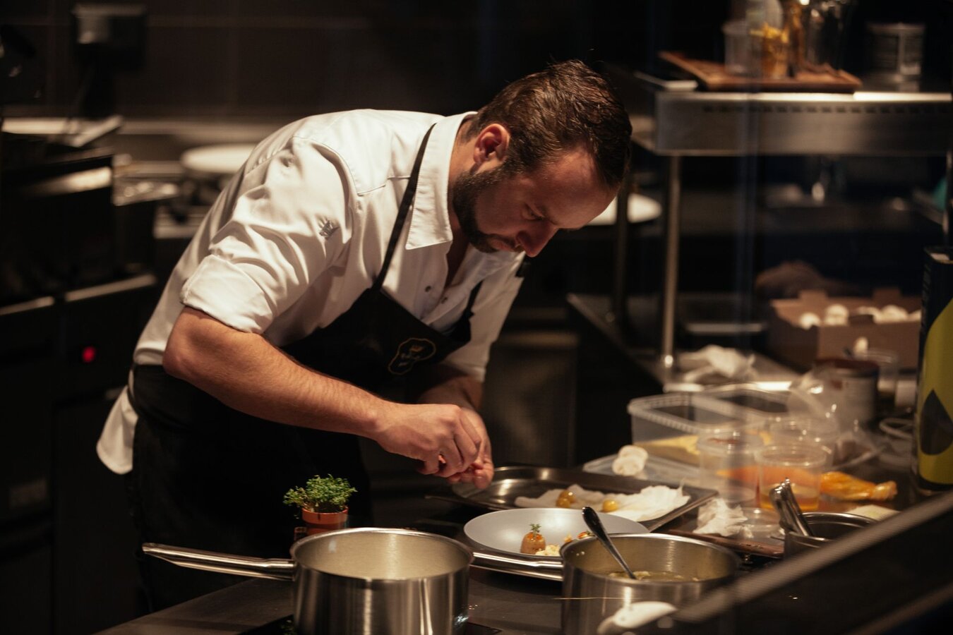 Gäste kommen zu uns, weil sie Kulinarik mit allen Sinnen spüren wollen. Im Vordergrund steht nicht die Nahrungsaufnahme, sondern das Erlebnis. Ob ein Gast wiederkommt, hängt dabei vom Gesamtpaket, das auf ihn wirkt, ab. Neben unserer High-End-Küche zählen ein aufmerksamer Service und natürlich schönes Interieur dazu. Für die Qualität der Speisen bin jedoch nicht nur ich verantwortlich. Das Endresultat ist nur so gut wie die Leistung eines jeden in meinem 40-köpfigen Team.