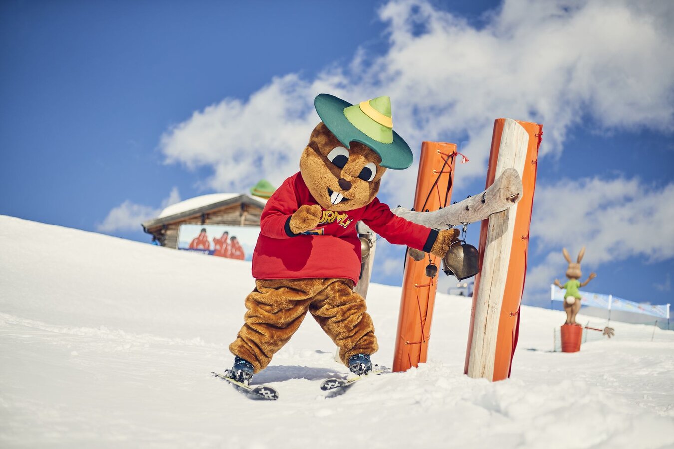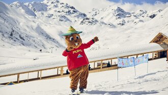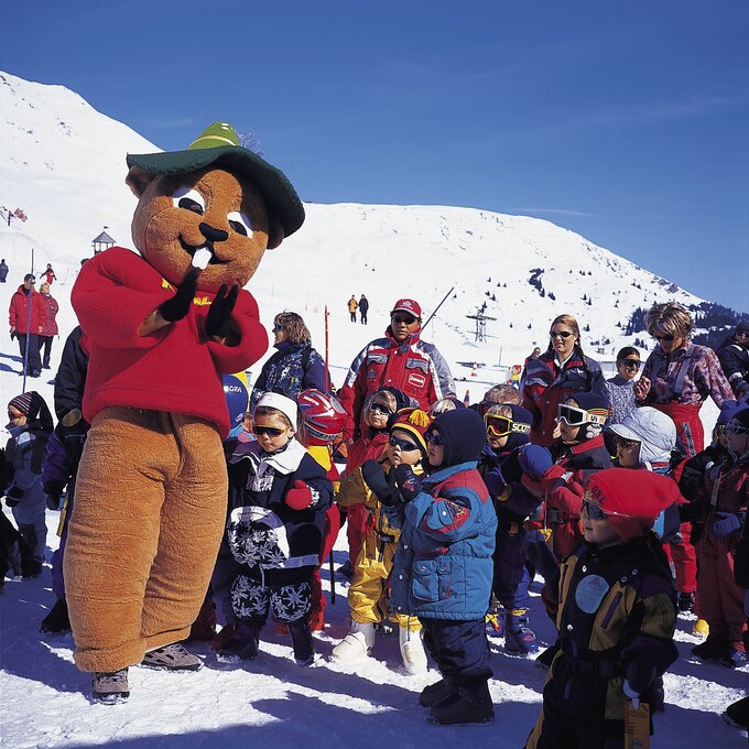 „Natürlich kann auch ich Ski fahren. Es gehört zu mir wie der Schnee zum Winter oder die Albernheiten zu einem spaßigen Tag, die ich gerne mit meiner Freundin Berta anstelle. Das erste Mal stand ich im Winter 1994/95 auf der Piste. Auch das Snowboarden, Rodeln und Langlaufen habe ich sofort getestet. Wie du dir nun vielleicht denken kannst, mache ich keinen Winterschlaf. Das Toben am Berg kann ich mir doch nicht entgehen lassen“, antwortet Murmli. Da gebe ich ihm recht. „Das neue Maskottchen sollte unsere Sportarten am Berg verkörpern und die Kinder zu Sport am Berg animieren. So wurden ihm gleich Ski und Snowboard angeschnallt“, erinnert sich Rudolf Hammerle von der Skischule Serfaus zurück. Von Anfang an konnte er sich mit der klaren Familienpositionierung identifizieren und gilt als einer der Regionspioniere.