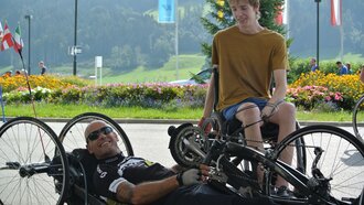 Während meiner Rehabilitation in Bad Häring fand ich im Handbiken eine neue Herausforderung und war sofort begeistert. Bei diesem Sport spielt meine Behinderung plötzlich keine Rolle mehr. Er macht mich einfach komplett. Bei meiner ersten Spritztour legte ich bescheidene 4 km zurück. Meine erste längere Tour führte mich nach Bari: 1.200 km galt es zu überwinden. Ein Jahr später radelte ich für Florian, der nach einem Bergunglück seither querschnittsgelähmt ist, bis nach Sizilien und sammelte Spenden für ihn. Auf dieses Event folgten erfreulicherweise viele weitere.