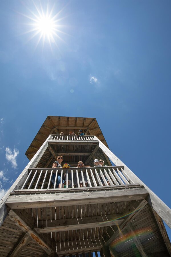 Der Wodeturm in Ladis ist ein idyllisches Ausflugsziel mit herrlicher Aussicht auf das Dorf und die umliegende Berglandschaft. Der Turm liegt direkt am malerischen Weiher und lädt zum Verweilen ein. Ein gemütlicher Spaziergang führt dorthin, ideal für eine kleine Pause in ruhiger Atmosphäre. Perfekt für ein Erinnerungsfoto oder einfach zum Genießen der Natur – ein schöner Ort für Groß und Klein!