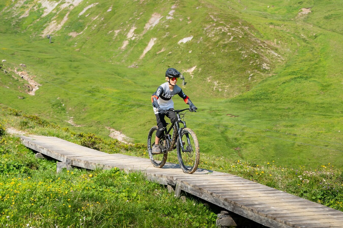 Der mittelschwer eingestufte Trail (rot) lädt fortgeschrittene Biker ein, soll aber auch Anfänger nicht abschrecken. Durch Anlieger, Wellen und verschiedene Gefälle, die alle optimal abgestimmt und unterschiedlich kombinierbar sind, kann jeder seine eigene Line finden und sich austoben: Ob gemütlich den Trail hinunterrollen und sich dabei vom tollen Panorama begeistern lassen oder die Strecke mit Highspeed bewältigen, beides ist am Scheidtrail möglich. Nach rund 240 Tiefenmetern rollt man smooth an einem Bachbett entlang zurück zur Talstation der Lazidbahn.