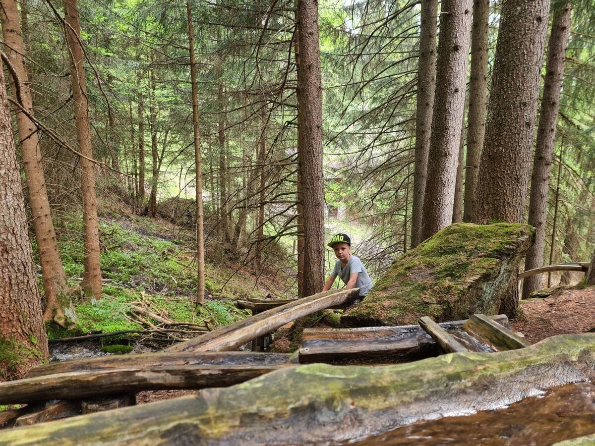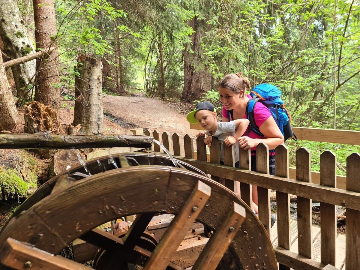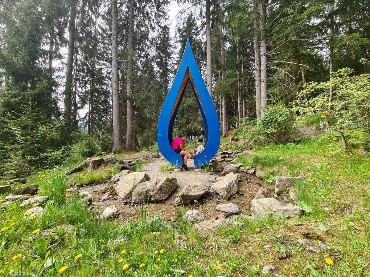 Am Beginn des Weges wird an einem Wasserrad (L007) gezeigt, wie man bereits früher die Kraft des Wassers für Mühlen und Sägen genutzt hat. Weiter geht es über die „Welle“ und zum „Wasservorhang“. Darauf folgen die „Wasserbahnen“ und die neu gestaltete „Riesenquelle“. In der Wasserschleife lädt sie ein „Wassertropfen“ zum Verweilen ein. Horchen Sie auf die Melodie des Wassers, es spielt je nach Lust und Laune – fröhlich, bedächtig oder traurig, genau der Stimmung der zuhörenden Person angepasst. Der vorbeifließende Bach ist das Begleitorchester mit Millionen Wassertropfen als Musikanten. Vorbei am „Fanggaloch“ der Tuffgrotte geht es dann zur Schwefelquelle. Die rote Farbe des Bächleins kommt nicht vom Schwefel, sondern vom hohen Eisengehalt, dadurch kann man das Wasser hier wirklich riechen. Am Ende des Weges befindet sich die Sauerbrunnquelle. In Schriften aus dem Jahre 1571 wird bereits erwähnt, dass Fremde und Fürsten aus Südtirol, der Schweiz und aus Bayern kamen, um die Heilkraft des Wassers zu nutzen. Auch heute wird der „Tiroler Sauerbrunn“ bei Erkrankungen von Niere, Leber, Darm, Magen, Verschleimung der Atemwege, Asthma usw. verwendet. Das Wasser gibt es in Flaschen zu kaufen und kann auch vor Ort beim Brunnen verkostet werden.
