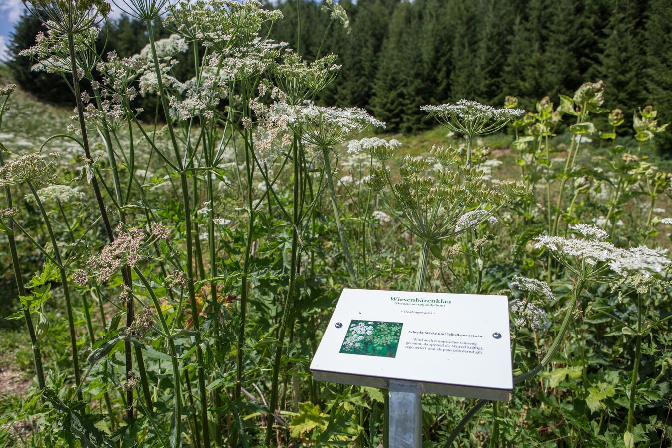 Ein schmaler Steig führt dich durch die Natur und zeigt an mehreren Stationen die faszinierenden Eigenschaften und vielfältigen Verwendungsmöglichkeiten heimischer Wildkräuter.