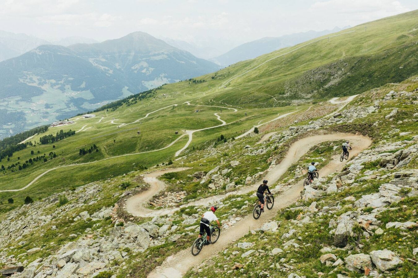 Beginnend auf 2.600 m schlängelt sich der Trail mit viel Flow durch atemberaubendes, hochalpines Gelände Richtung Fisser Joch und führt in sanften Spitzkehren, flowigen Kurven und kleinen und großen Wellen zum Heustadldorf – der perfekten Wohlfühlstation für eine kurze Rast: Sonne genießen, Panorama bestaunen, weiter geht’s.