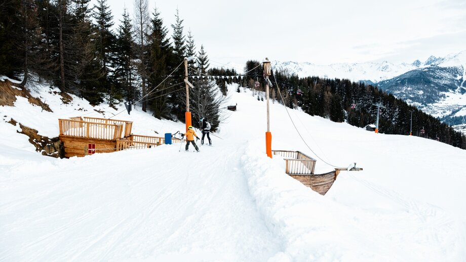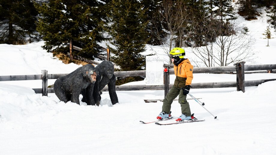 Mutige Kinder dürfen sich in der Höhlenwelt beweisen. Mit den Skiern geht es vorbei an Drache Urge und dem riesigen Felsmonster Hauke. Wo Bären und gruselige Moosmänner zu Hause sind, flitzt man am besten ganz schnell durch!