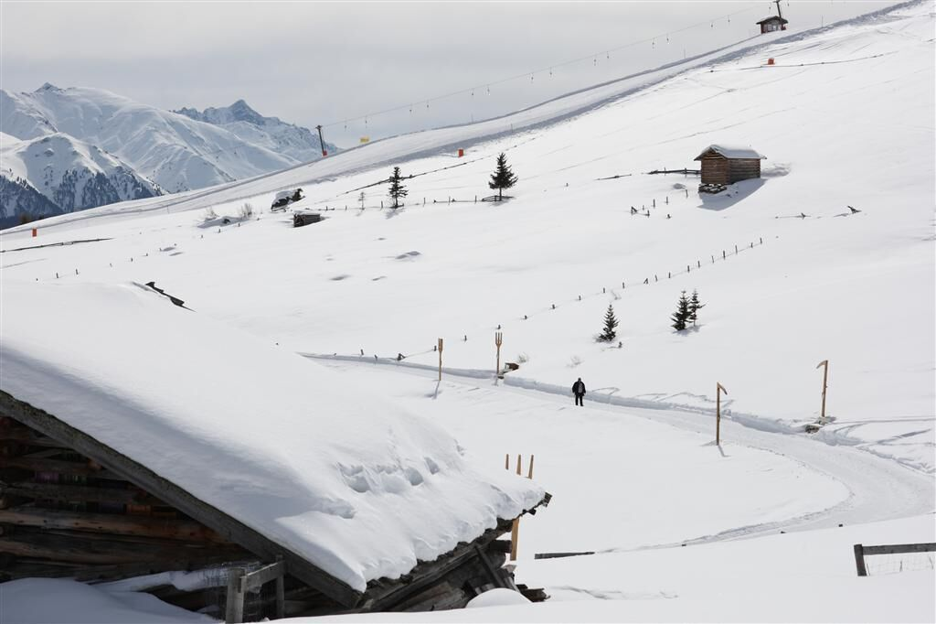 Von der Bergstation der Komperdell zum Kölner Haus und weiter zur Schalber Alm. Am Ufer des Speichersees entlang zur Cervosa Alm und zurück zur Kinderschneealm oder mit dem Förderband zum Kölner Haus.