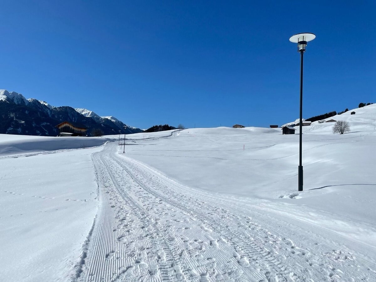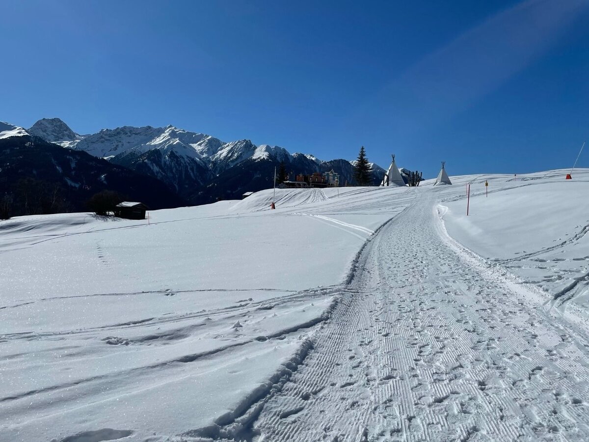 Beschreibung: Vom Dorfzentrum (L006) in südwestlicher Richtung ansteigend zum Ortsteil „Razil“ und geradeaus weiter Richtung Fiss. Bei der Skipiste rechts bleibend zur Skihütte „Weiberkessl“ und etwas oberhalb die Piste nach links zu Bertas Indianerland queren. Dann flach parallel der Loipen nach Fiss.