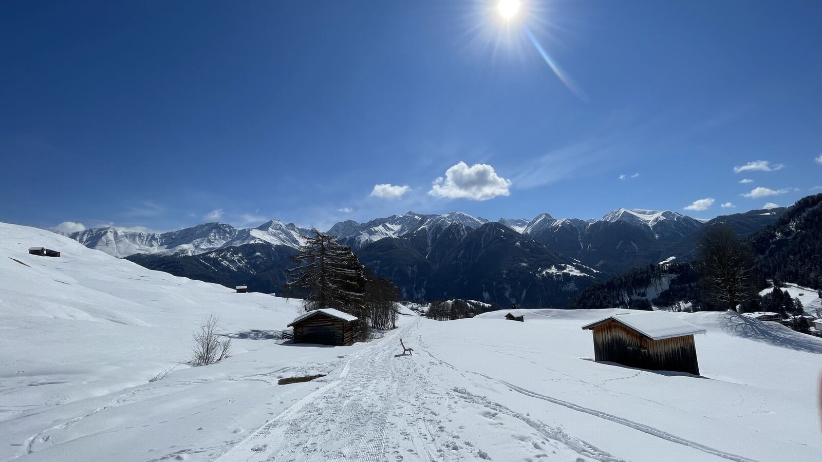 Hinweis: der Wanderweg ist auf eigene Gefahr, und Skifahrer sowie Snowboarder sind im gesamten Bereich unterwegs.